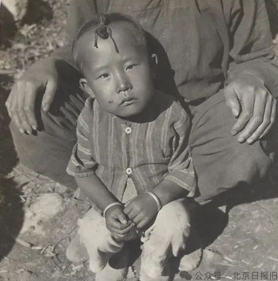 比起小姑娘的阳光,年龄尚小的男孩显得有些拘谨,手上戴的镯子反映出了家长的美好愿望。如果这个小男孩还在世,年龄应该不到百岁。